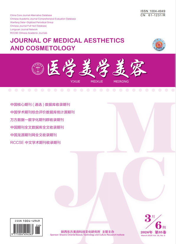 摘要:目的 探讨针对不对称双眼皮患者采用小切口抽脂与连续埋线重睑成形术治疗的临床效果。 方法 选取我院2020年5月-2022年5月收治的40例不对称双眼皮患者为研究对象,以随机数字表法分为常 规组和研究组,各20例。常规组应用切开法重睑成形术治疗,研究组以小切口抽脂与连续埋线重睑成形 术治疗,比较两组临床疗效、临床指标、并发症发生情况及治疗满意度。结果 研究组治疗总有效率为 100.00%,高于常规组的75.00%(P <0.05);研究组手术时间、切口愈合时间均短于常规组,术中出血量 小于常规组(P <0.05);研究组并发症发生率为5.00%,低于常规组的35.00%(P <0.05);研究组治疗满 意度为95.00%,高于常规组的75.00%(P <0.05)。结论 小切口抽脂与连续埋线重睑成形术在不对称双眼 皮患者中的应用效果确切,有助于修正双眼皮,使其对称,同时能够缩短手术时间,促进切口愈合,且术 中出血量较小,术后并发症发生风险较低,患者对治疗的满意度较高。